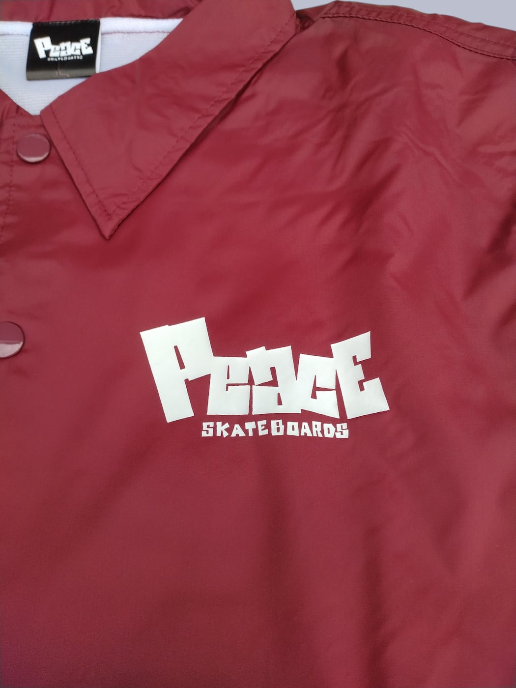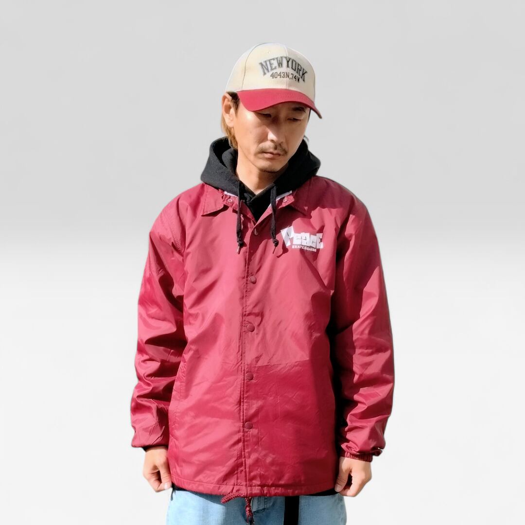 ドットボタン・ドローコード・ステッチワークなどディティールにこだわりながら90年代のストリートを思わせるベーシックなボディが魅力。スケータースタイルには、はずせないコーチジャケットをPeacE SKATEBOARDSカラー全開で仕上げました。