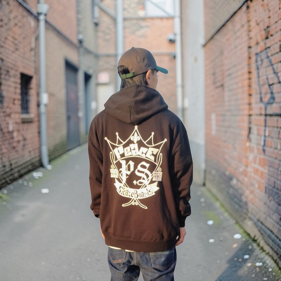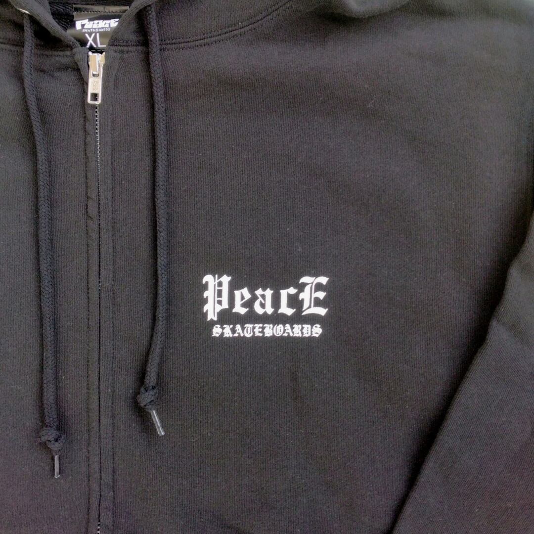 リラックスした雰囲気を演出する絶妙な厚みです。フロントにはPeacE SBのロゴをブラックレターで配置。
